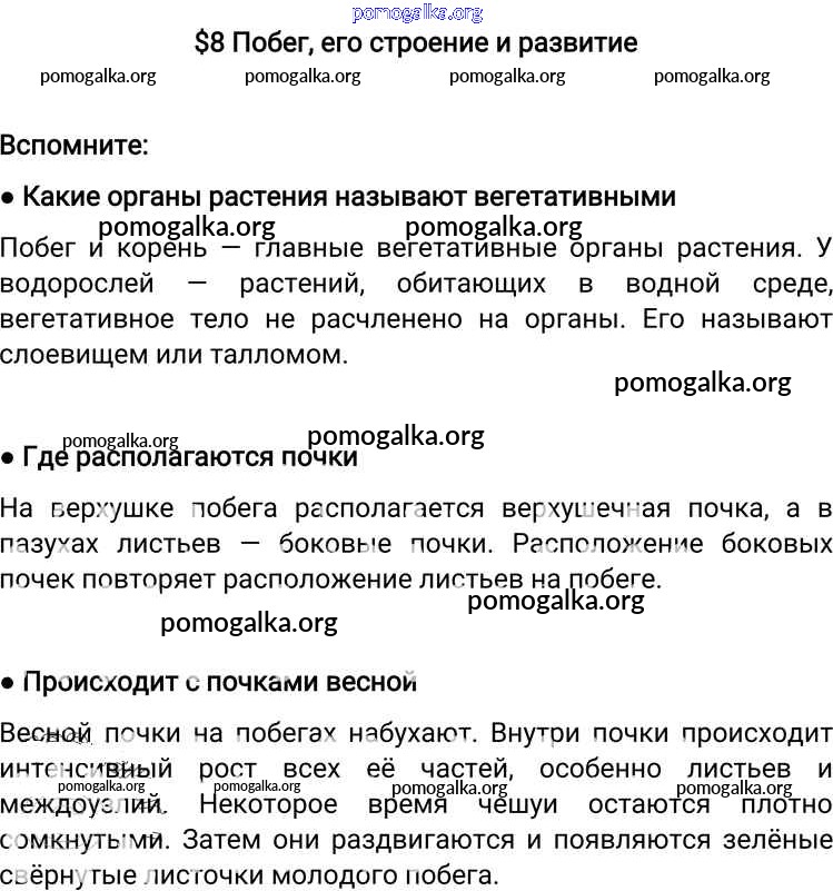 Готовые ответы - Биология 6 класс Пономарева И.Н. - §8 Вспомните