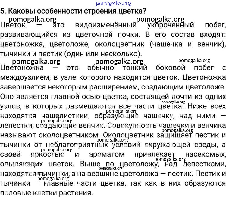 Готовые ответы - Биология 6 класс Пономарева И.Н. - подведём итоги. глава 2 5