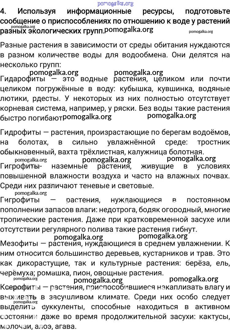 Готовые ответы - Биология 6 класс Пономарева И.Н. - вопрос §13 4
