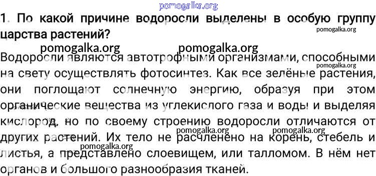 Готовые ответы - Биология 6 класс Пономарева И.Н. - вопрос §20 1