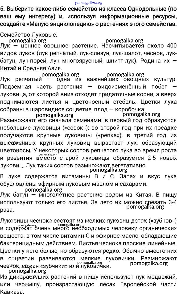 Готовые ответы - Биология 6 класс Пономарева И.Н. - вопрос §26 5