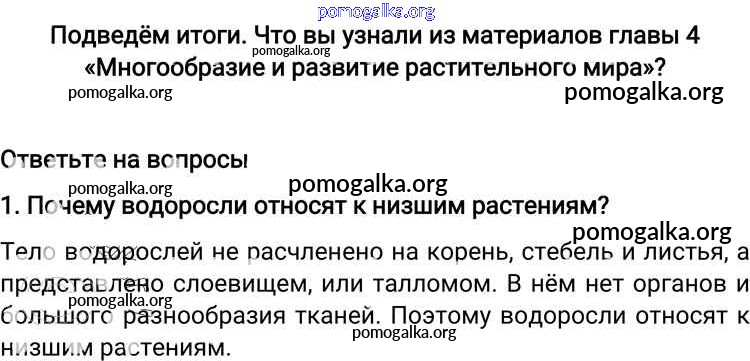 Готовые ответы - Биология 6 класс Пономарева И.Н. - подведём итоги. глава 4 1