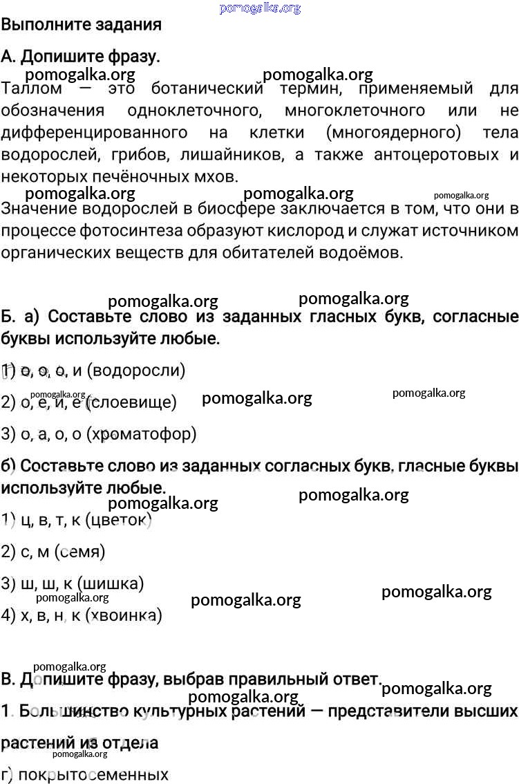 Готовые ответы - Биология 6 класс Пономарева И.Н. - подведём итоги. глава 4 Тестовые задания
