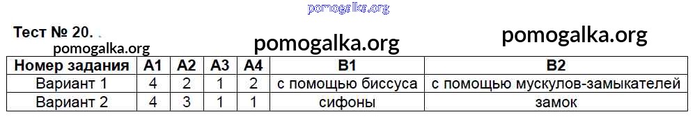 Готовые ответы - Биология 7 класс КИМ Артемьева Н.А. - тест 20