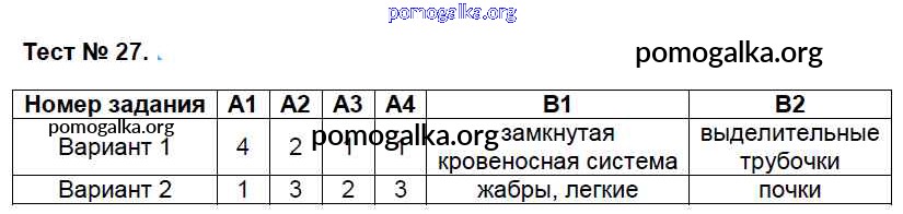 Готовые ответы - Биология 7 класс КИМ Артемьева Н.А. - тест 27