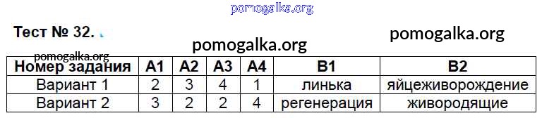 Готовые ответы - Биология 7 класс КИМ Артемьева Н.А. - тест 32