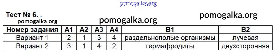 Готовые ответы - Биология 7 класс КИМ Артемьева Н.А. - тест 6