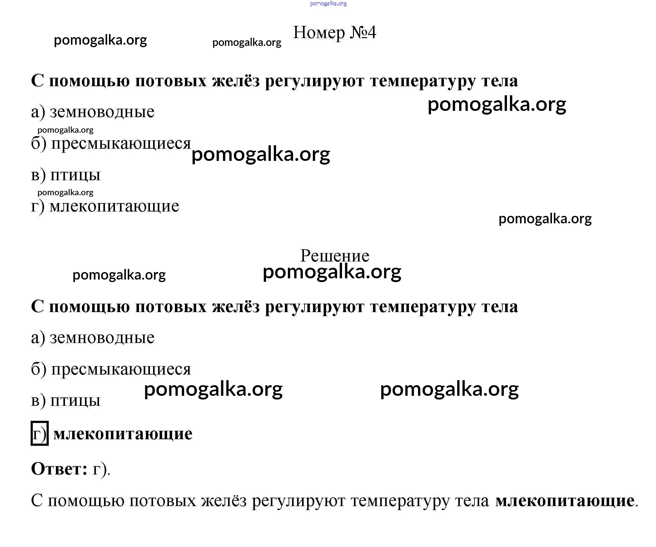 Готовые ответы - Биология 7 класс рабочая тетрадь Пасечник В.В. - задание1 тестовый контроль 4 4