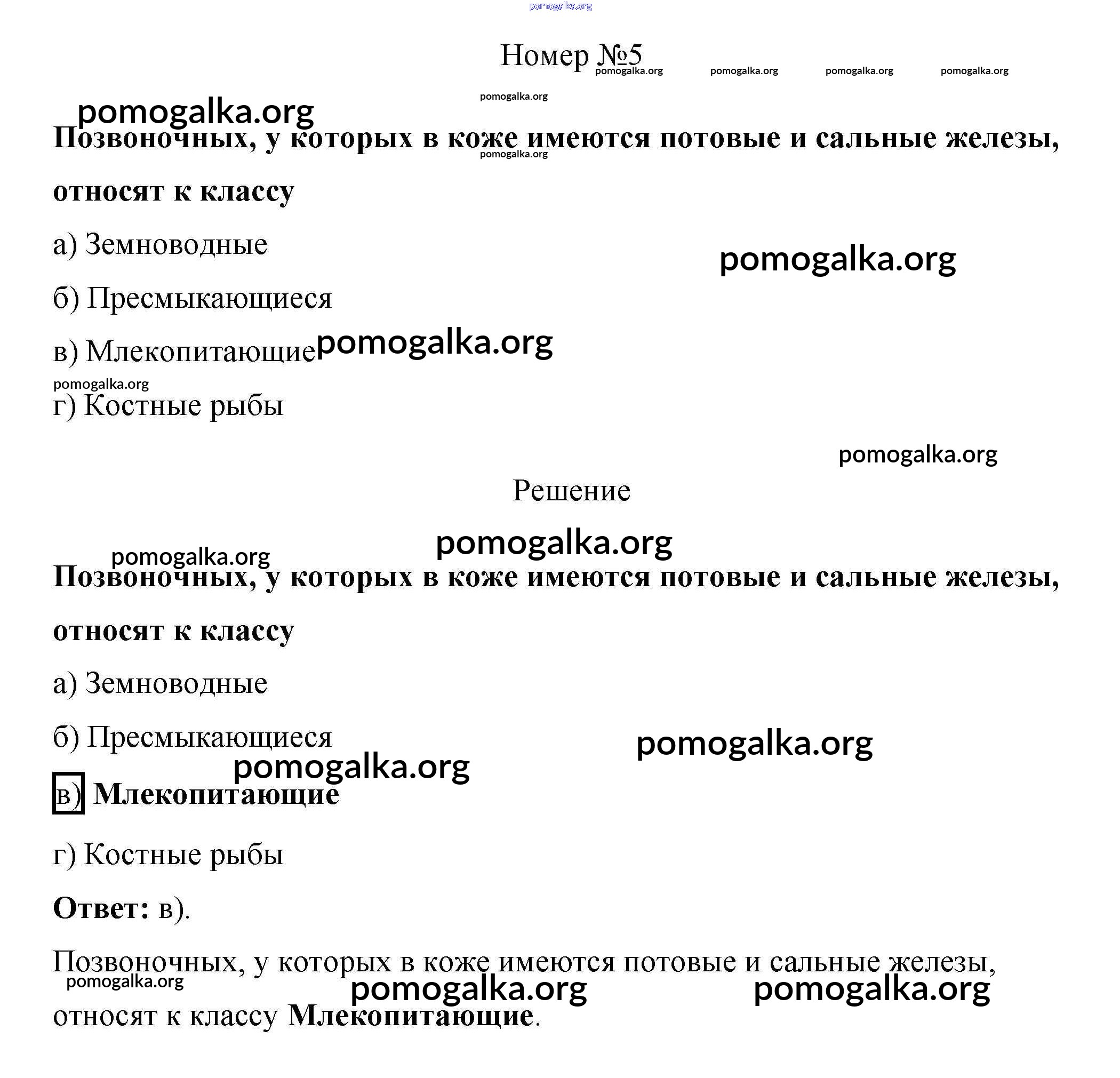 Готовые ответы - Биология 7 класс рабочая тетрадь Пасечник В.В. - задание1 тестовый контроль 4 5