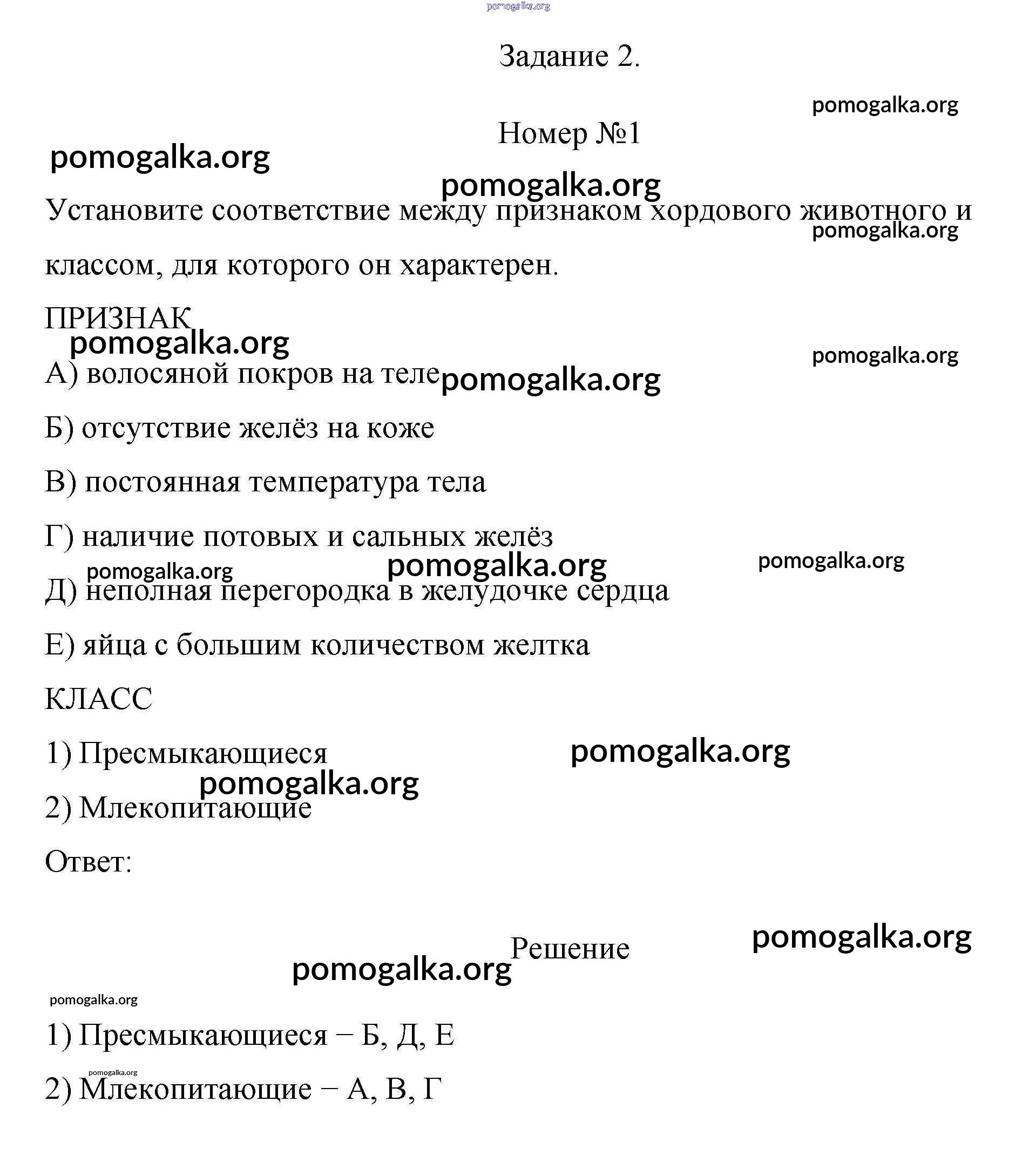 Готовые ответы - Биология 7 класс рабочая тетрадь Пасечник В.В. - задание2 тестовый контроль 4 1