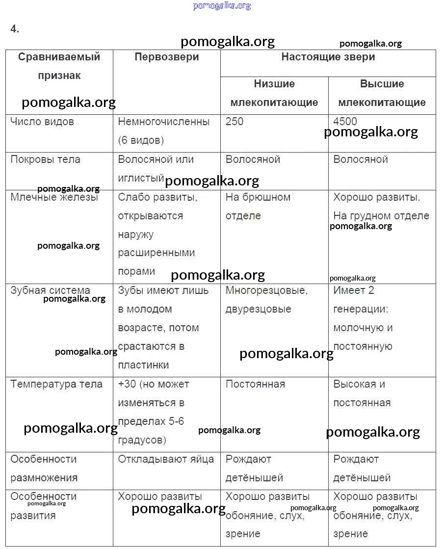 Готовые ответы - Биология 7 класс рабочая тетрадь Пасечник В.В. - §56. многообразие зверей тетрадь 2016 4