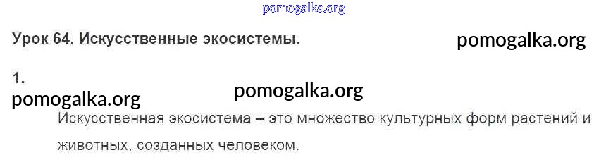 Готовые ответы - Биология 7 класс рабочая тетрадь Пасечник В.В. - §64. искусственные экосистемы тетрадь 2016 1