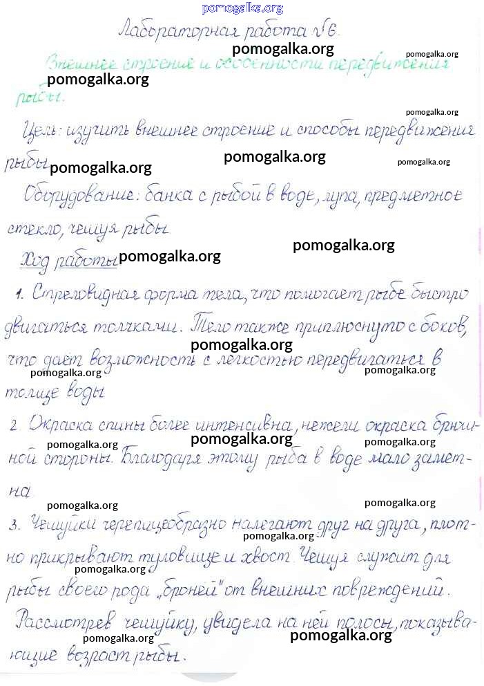 Готовые ответы - Биология 7 класс Константинов В.М. - лабораторная работа 6