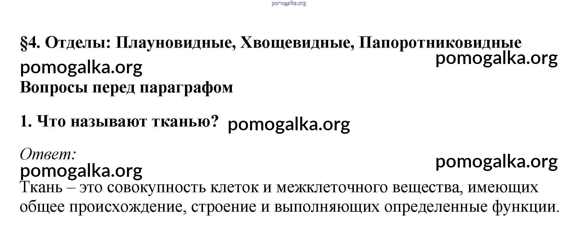 Готовые ответы - Биология 7 класс Пасечник В.В. - вопрос перед параграфом §4 1