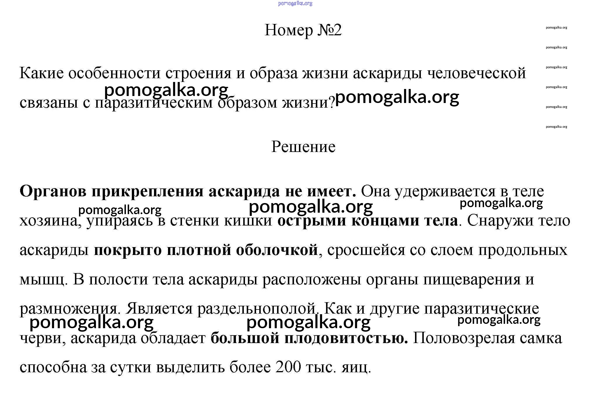 Готовые ответы - Биология 7 класс Пасечник Линия Жизни - вопрос §10. тип круглые черви и тип кольчатые черви 2