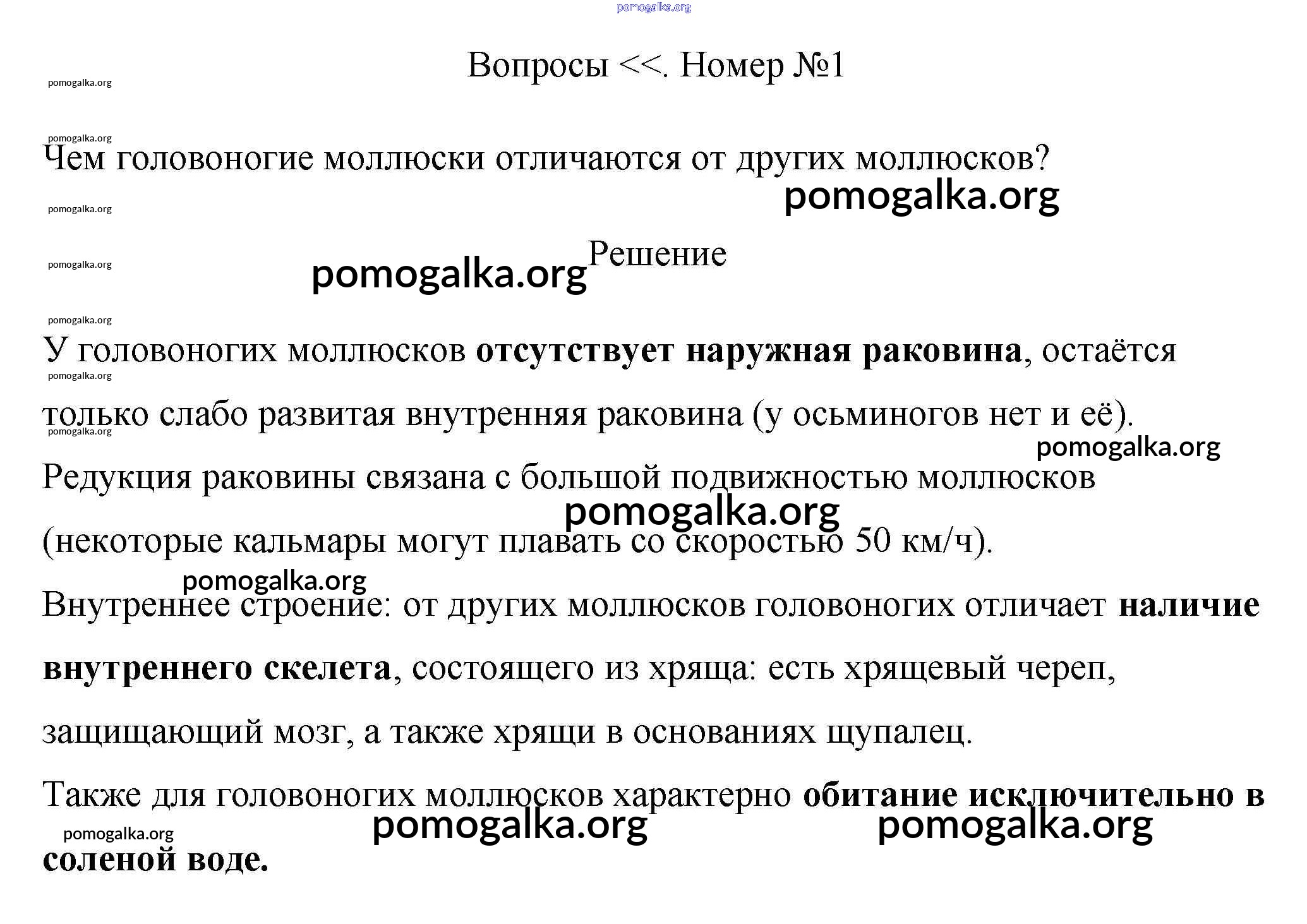 Готовые ответы - Биология 7 класс Пасечник Линия Жизни - вопрос §12. класс головоногие моллюски 1