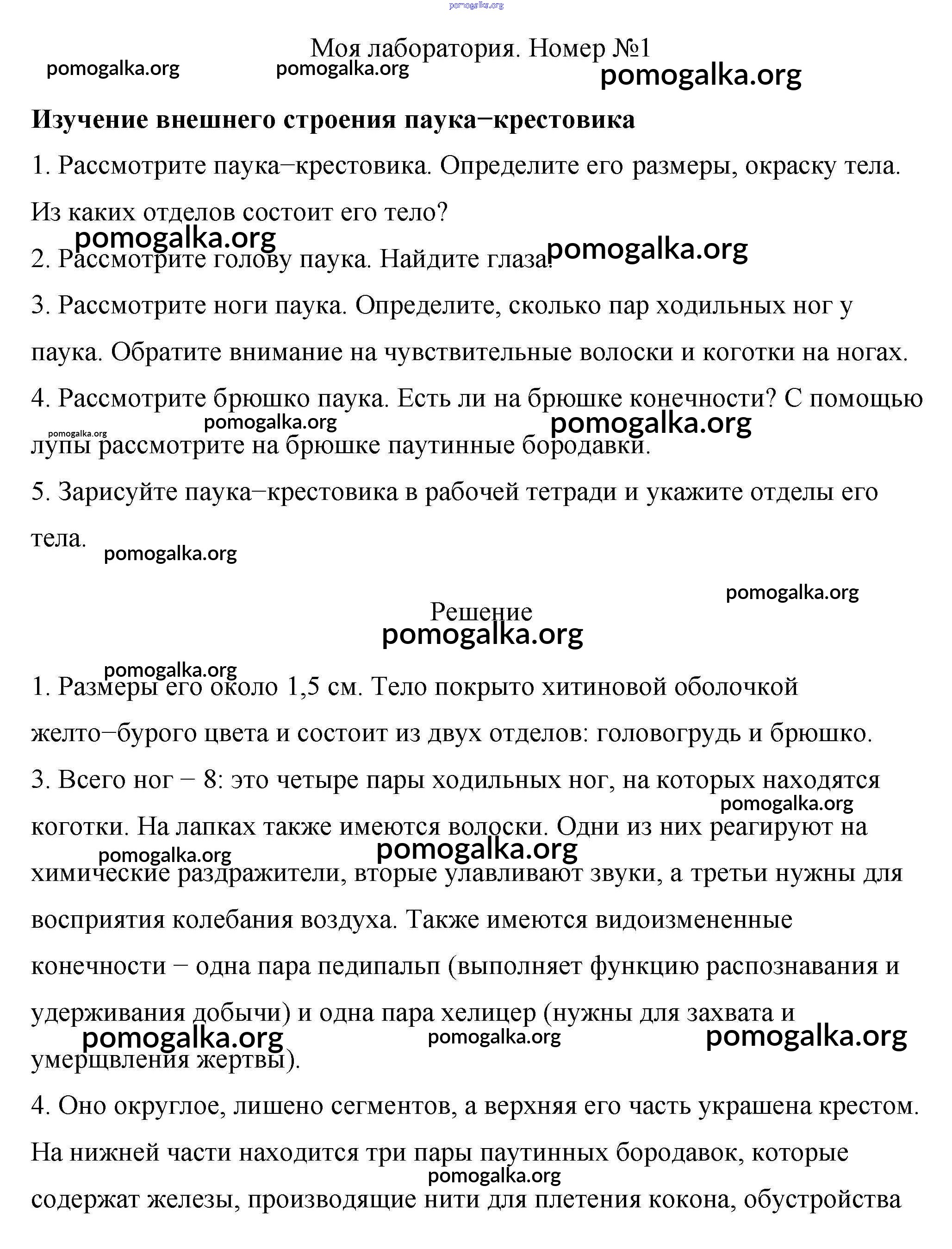 Готовые ответы - Биология 7 класс Пасечник Линия Жизни - моя лаборатория §14. класс паукообразных 1