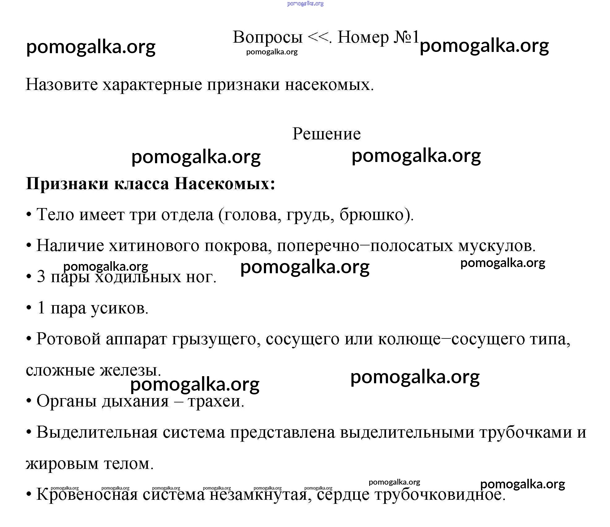 Готовые ответы - Биология 7 класс Пасечник Линия Жизни - вопрос §15. класс насекомые 1