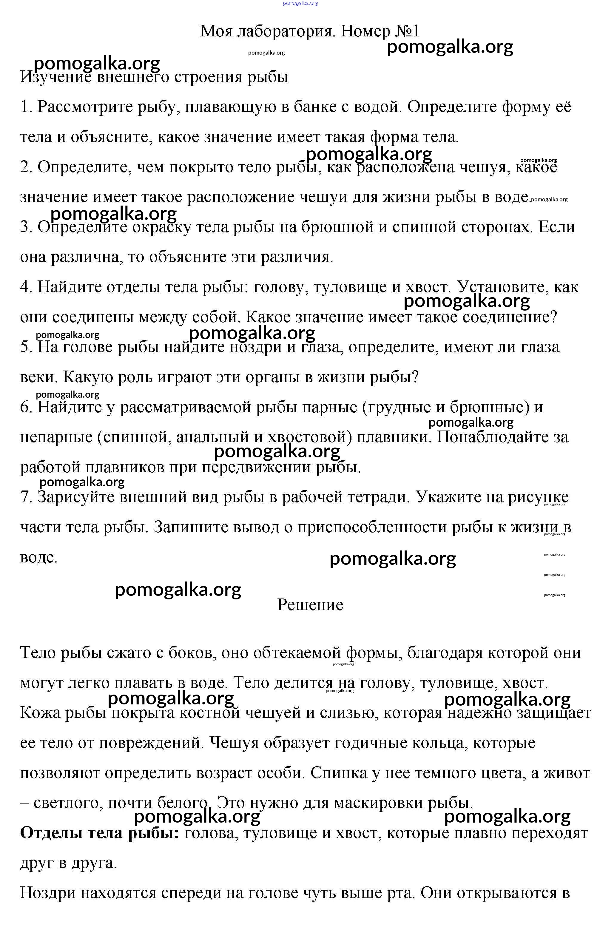 Готовые ответы - Биология 7 класс Пасечник Линия Жизни - моя лаборатория §18. общая характеристика рыб 1