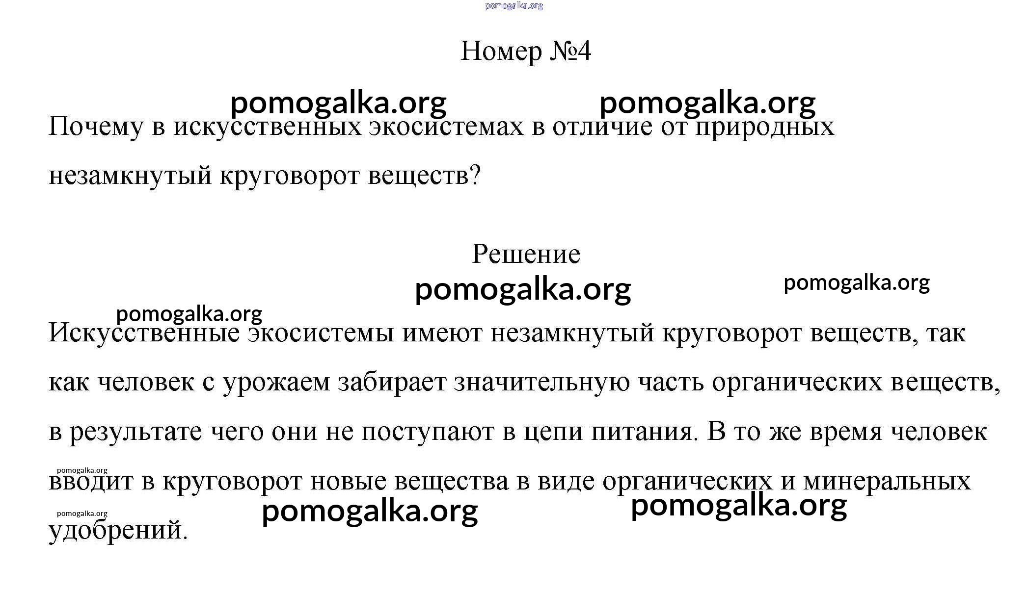 Готовые ответы - Биология 7 класс Пасечник Линия Жизни - вопрос §31. искусcтвенные экосистемы 4