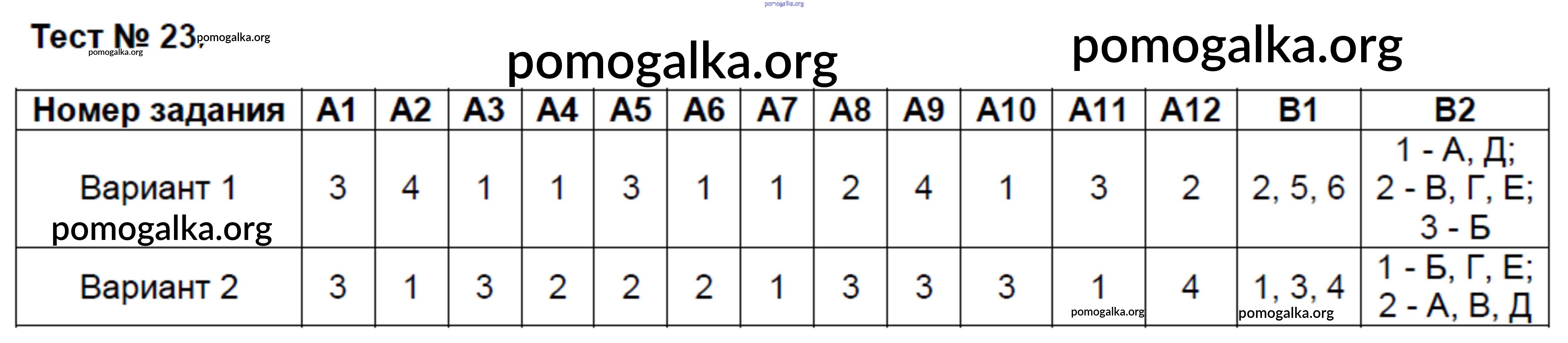 Готовые ответы - Биология 8 класс КИМ Богданов Н.А. - тест 23