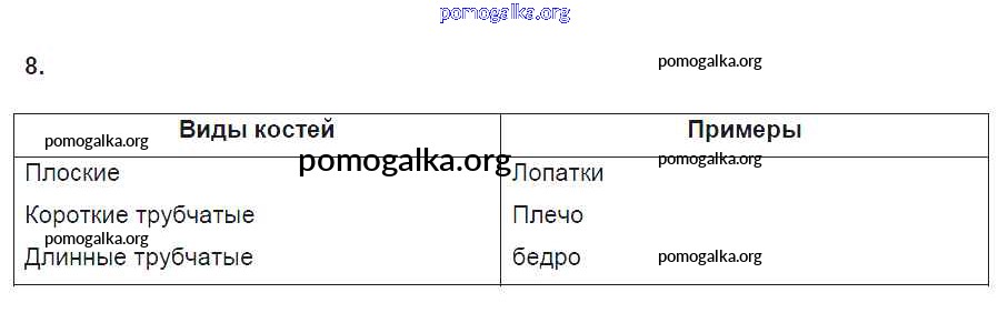 Готовые ответы - Биология 8 класс рабочая тетрадь Пасечник В.В. - §7. опорно-двигательная система 8