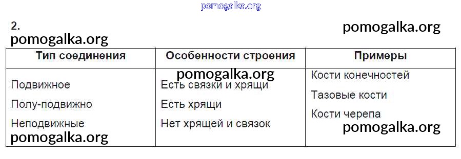 Готовые ответы - Биология 8 класс рабочая тетрадь Пасечник В.В. - §8. скелет человека 2