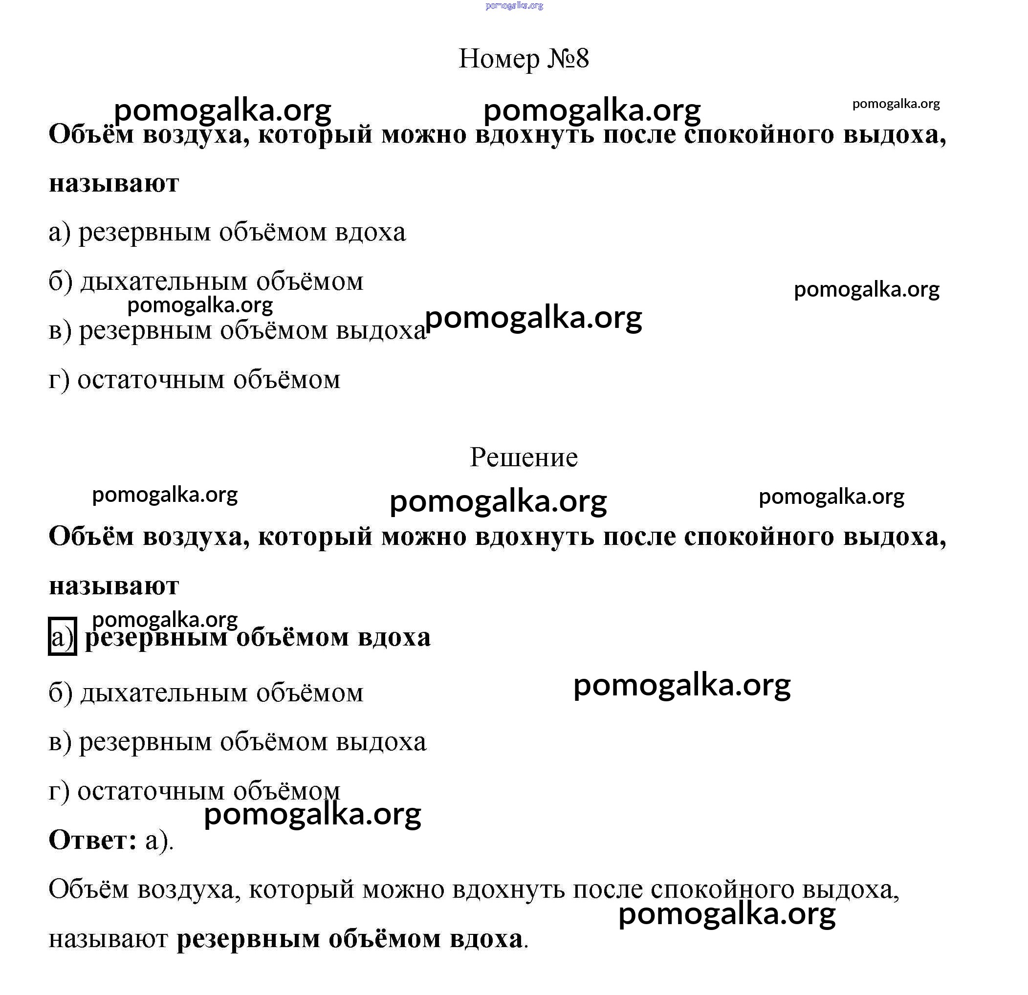 Готовые ответы - Биология 8 класс рабочая тетрадь Пасечник В.В. - тестовый контроль 6 8