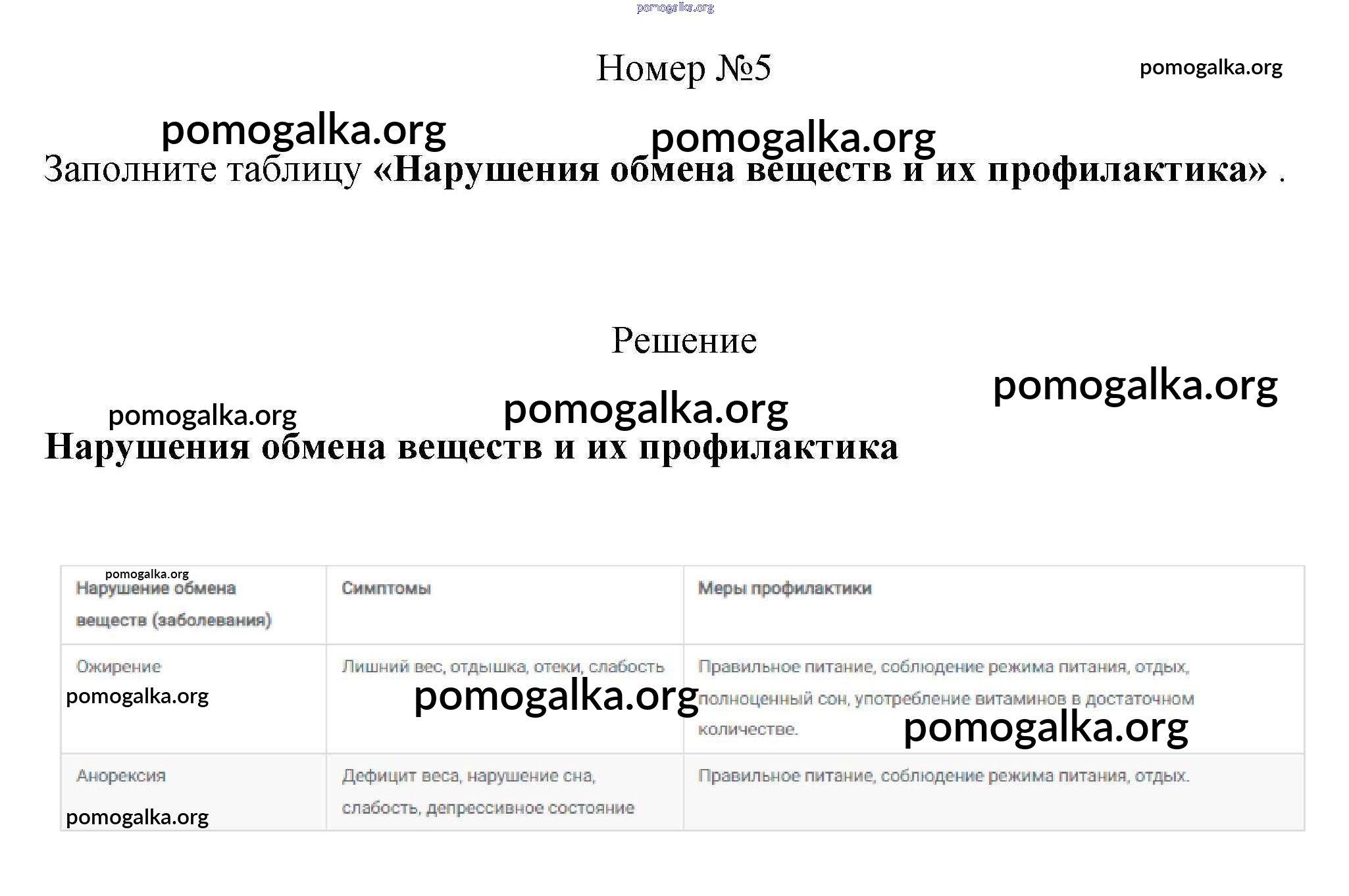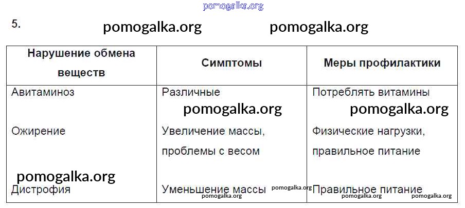 Готовые ответы - Биология 8 класс рабочая тетрадь Пасечник В.В. - §32. нормы питания 5