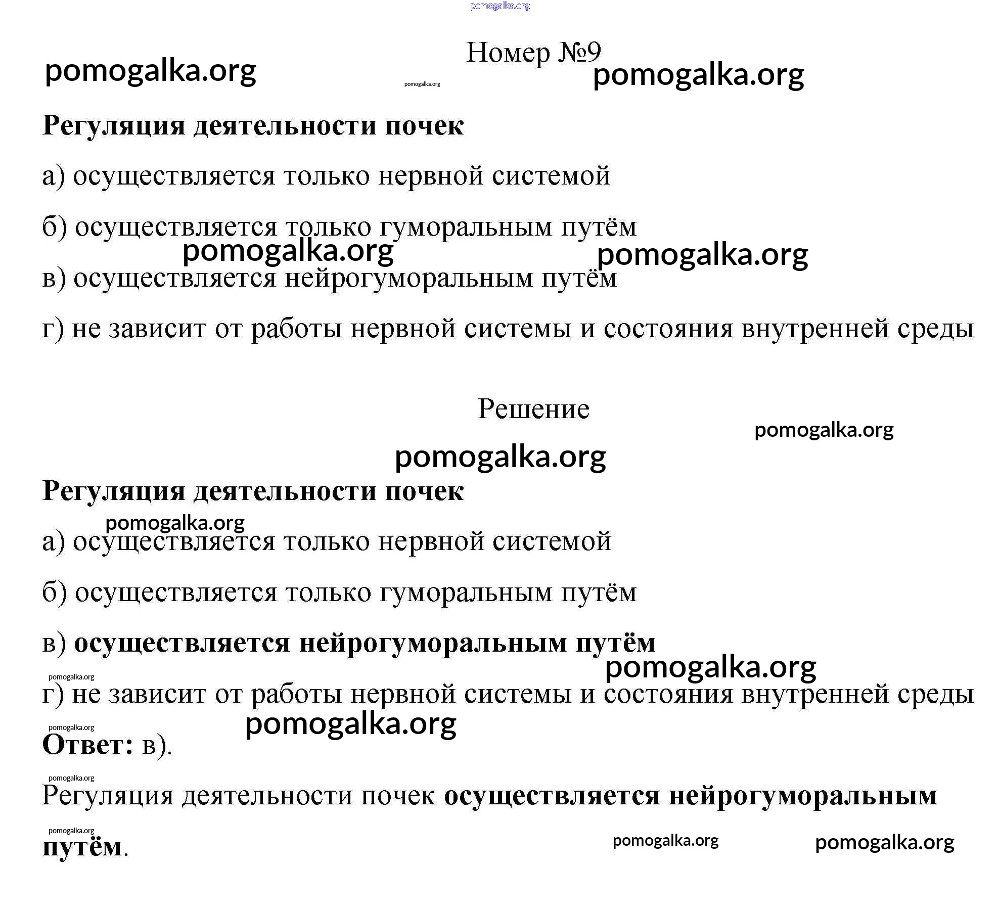 Готовые ответы - Биология 8 класс рабочая тетрадь Пасечник В.В. - тестовый контроль 9 9