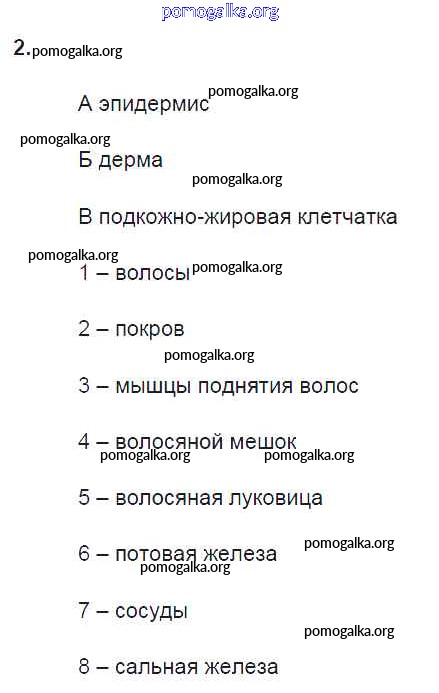 Готовые ответы - Биология 8 класс рабочая тетрадь Пасечник В.В. - §35. наружные покровы тела 2