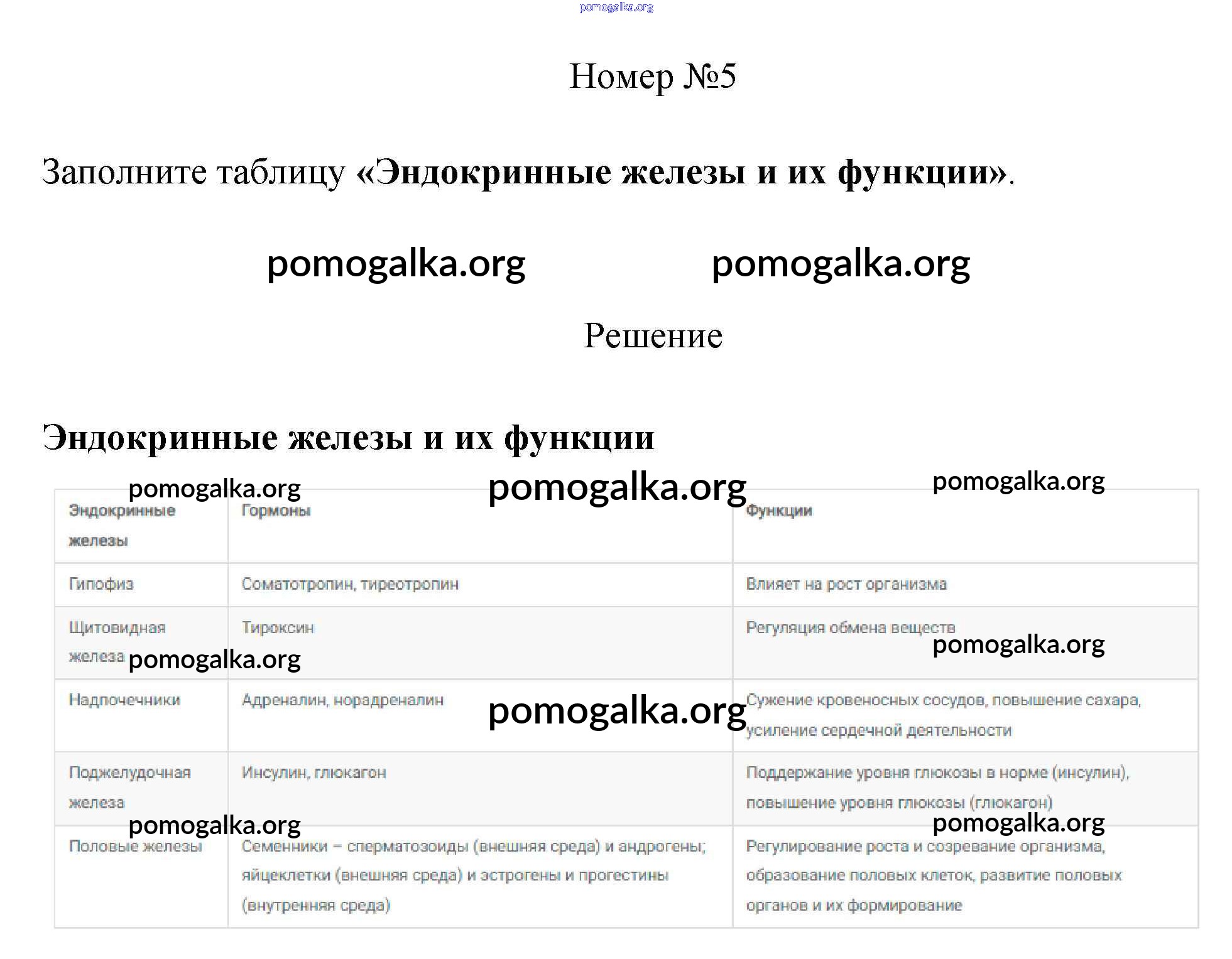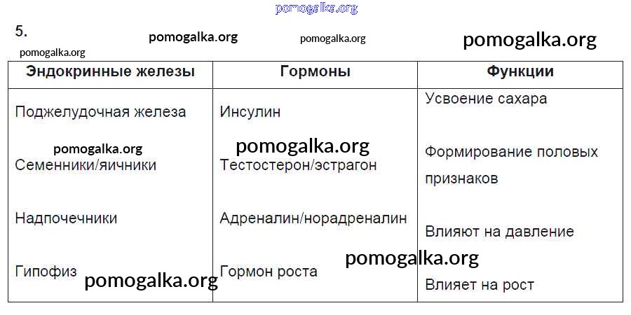 Готовые ответы - Биология 8 класс рабочая тетрадь Пасечник В.В. - §38. железы внутренней секреции и их функции 5