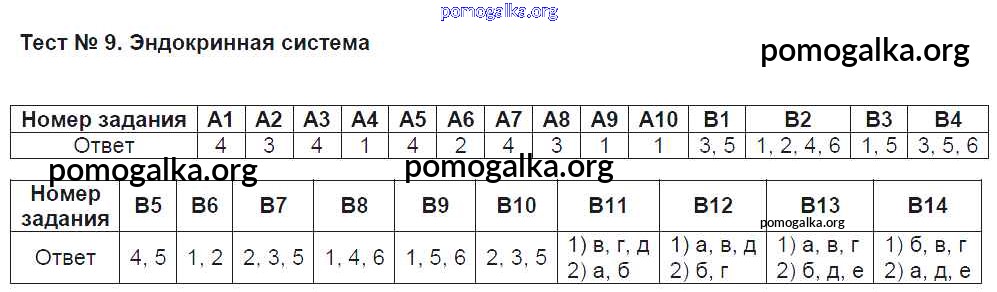 Готовые ответы - Биология 8 класс тесты Солодова Е.А. - Тест 9