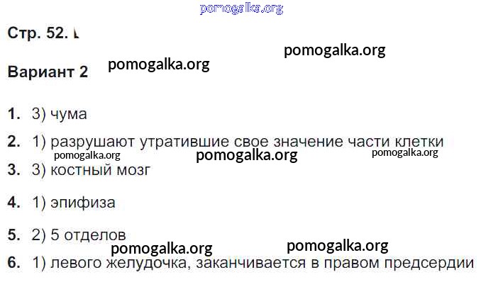 Готовые ответы - Биология 8 класс тетрадь-экзаменатор Сухорукова Л.Н. - страница 52