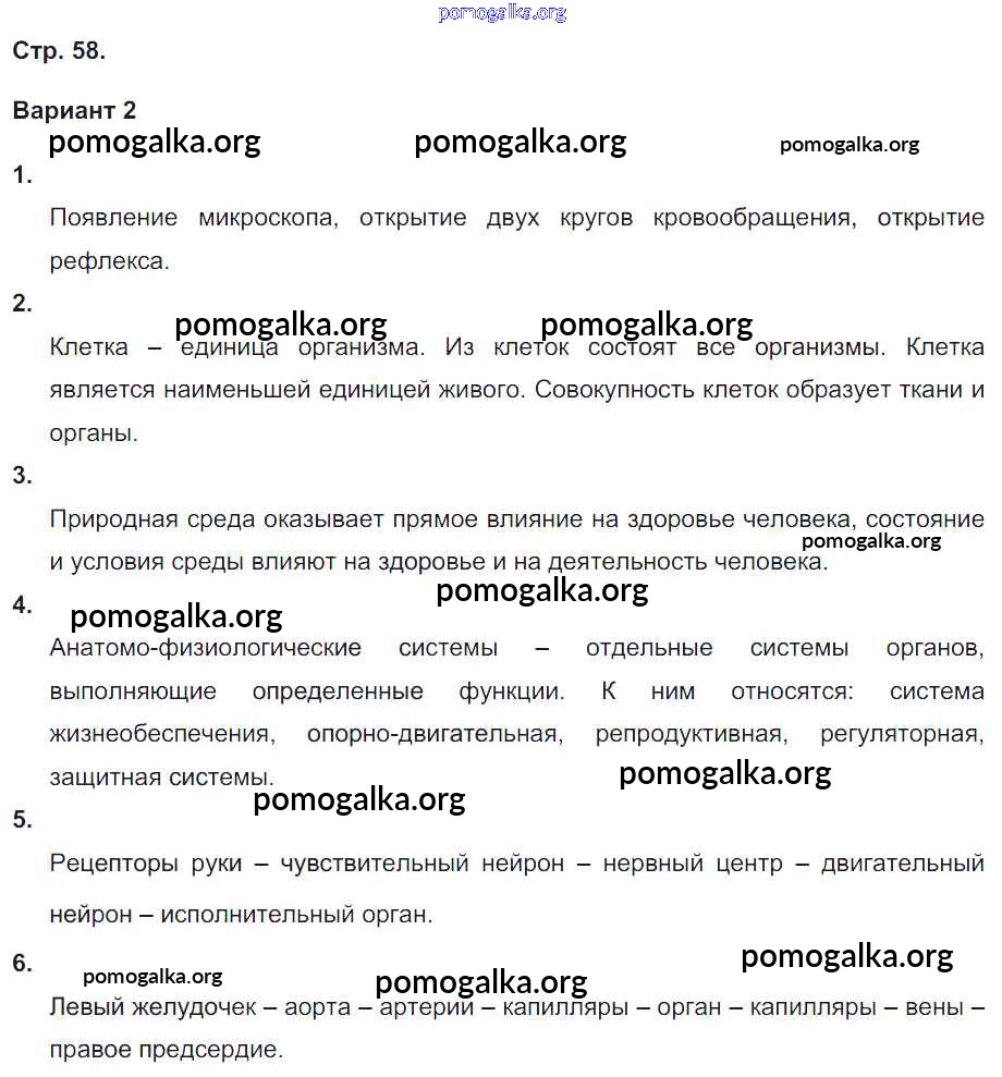 Готовые ответы - Биология 8 класс тетрадь-экзаменатор Сухорукова Л.Н. - страница 58