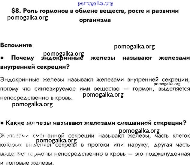 Готовые ответы - Биология 8 класс Драгомилов А.Г. - §8 глава 2 Вспомним