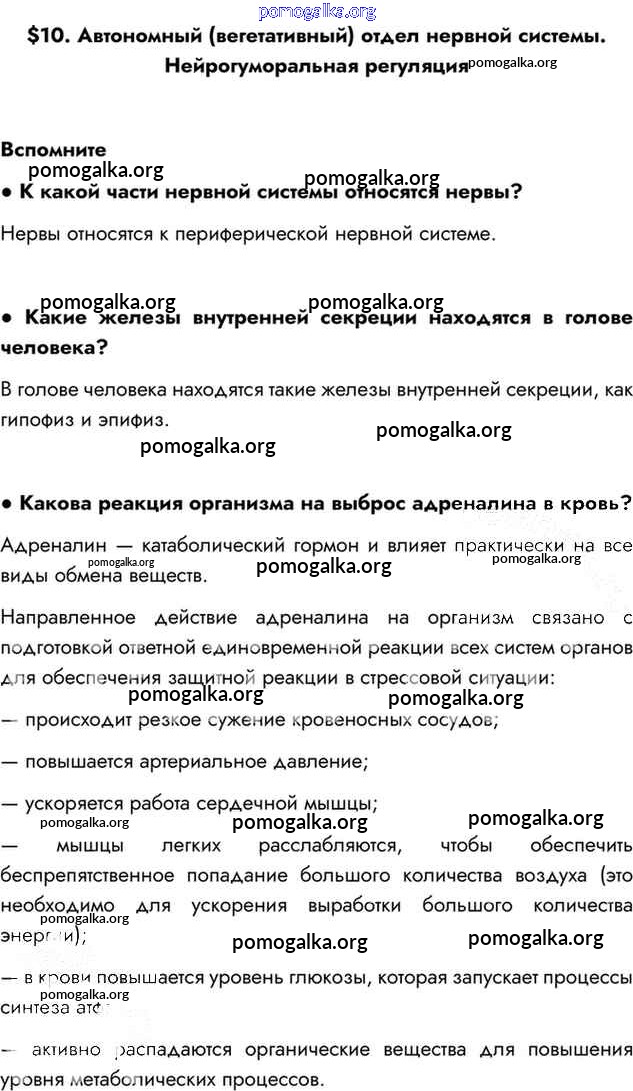 Готовые ответы - Биология 8 класс Драгомилов А.Г. - §10 глава 2 Вспомним