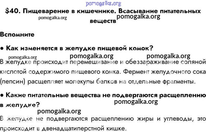 Готовые ответы - Биология 8 класс Драгомилов А.Г. - §40 глава 7 Вспомним