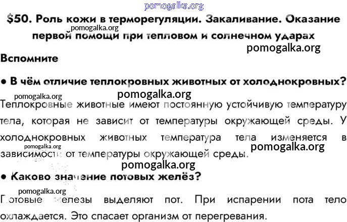 §50. Роль кожи в терморегуляции. Закаливание. Оказание первой помощи при тепловом и солнечном ударах