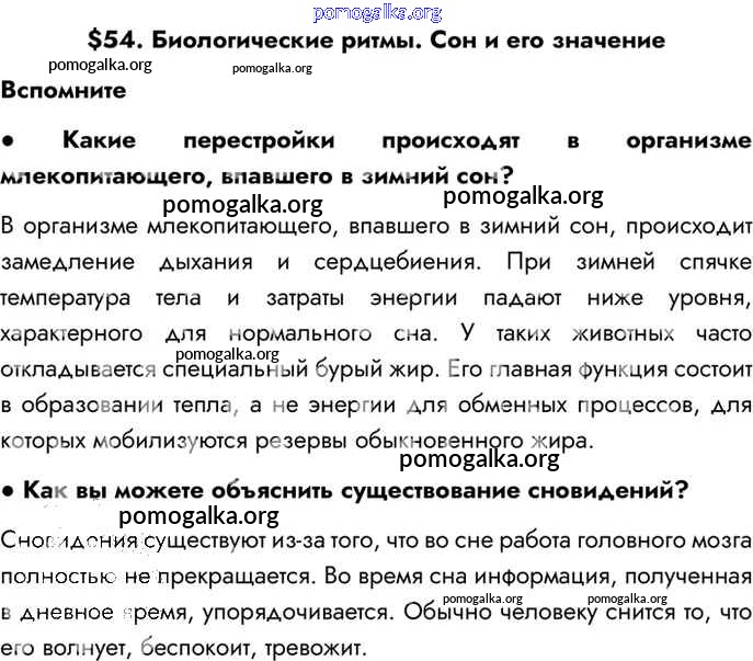 Готовые ответы - Биология 8 класс Драгомилов А.Г. - §54 глава 10 Вспомним