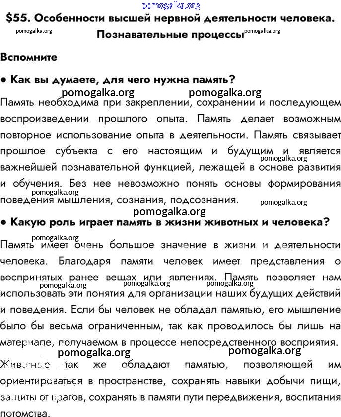 §55. Особенности высшей нервной деятельности человека. Познавательные процессы