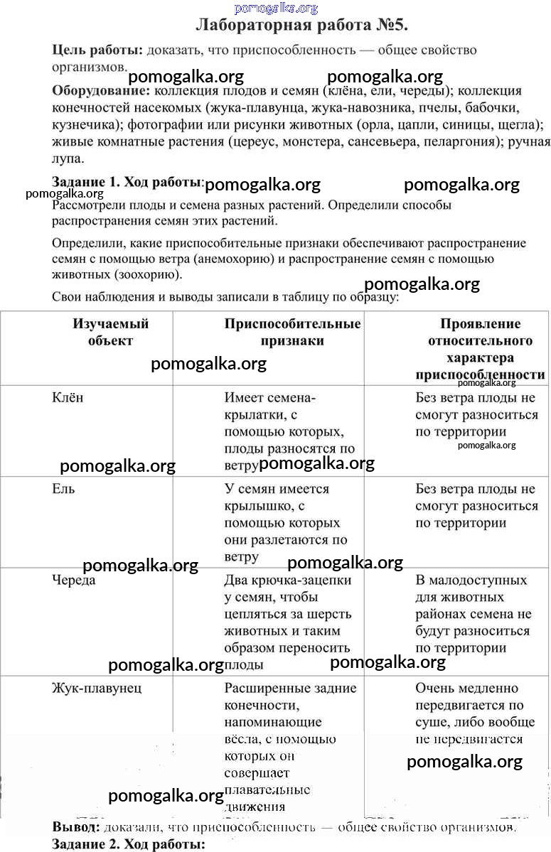 Готовые ответы - Биология 9 класс Пономарева И.Н. - лабораторная работа 5