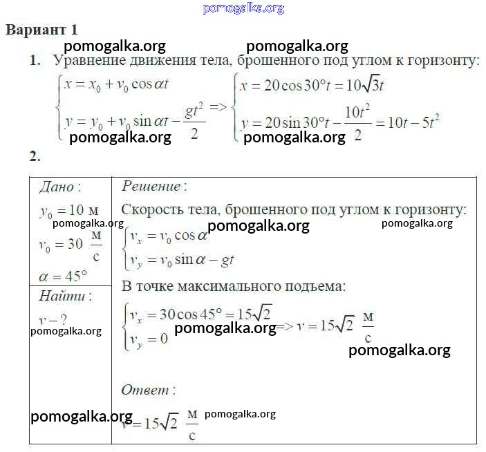 Готовые ответы - Физика 10 класс самостоятельные и контрольные работы Ерюткин Е.С. - ср №8 кинематика 1