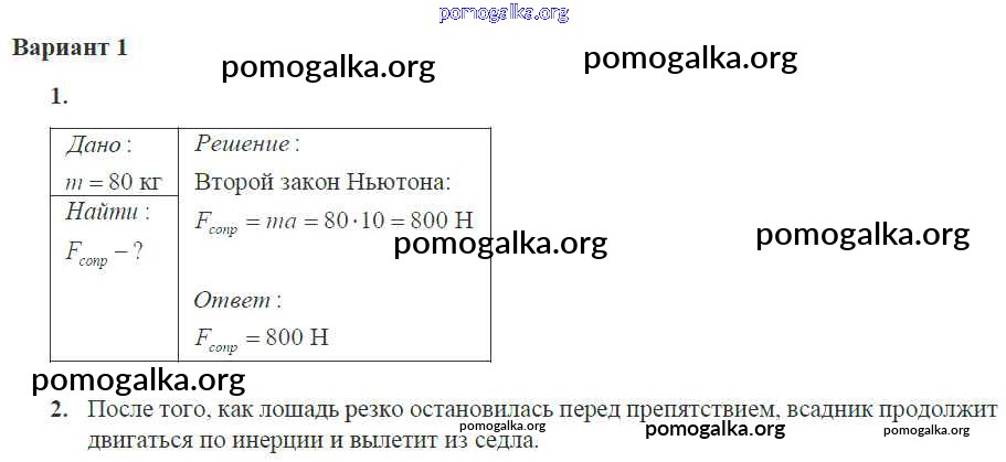 Готовые ответы - Физика 10 класс самостоятельные и контрольные работы Ерюткин Е.С. - ср №1 динамика 1