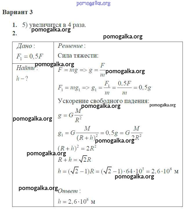 Готовые ответы - Физика 10 класс самостоятельные и контрольные работы Ерюткин Е.С. - ср №4 динамика 3