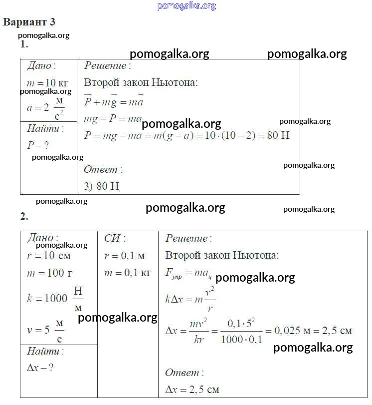 Готовые ответы - Физика 10 класс самостоятельные и контрольные работы Ерюткин Е.С. - ср №6 динамика 3