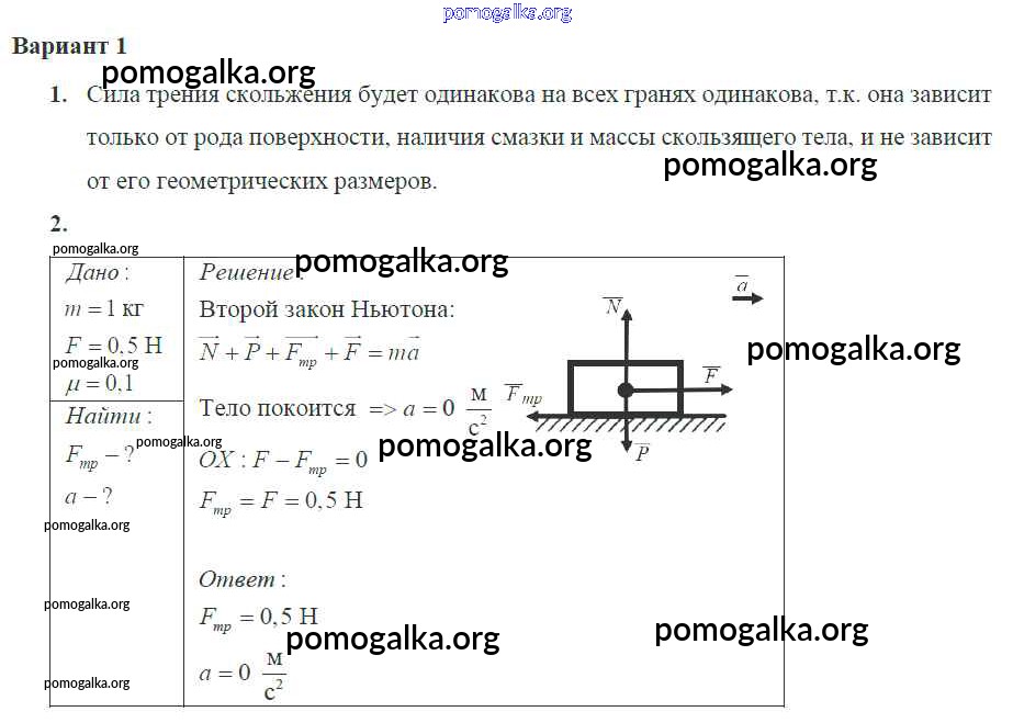 Готовые ответы - Физика 10 класс самостоятельные и контрольные работы Ерюткин Е.С. - ср №8 динамика 1