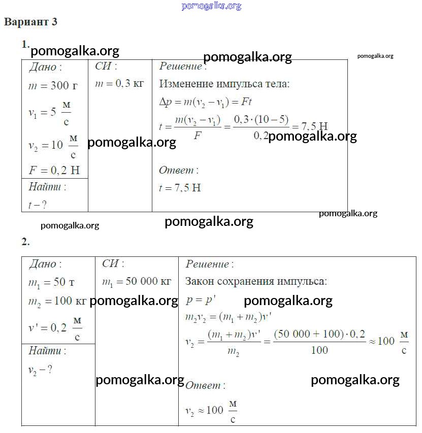 Готовые ответы - Физика 10 класс самостоятельные и контрольные работы Ерюткин Е.С. - ср №2 законы сохранения в механике 3