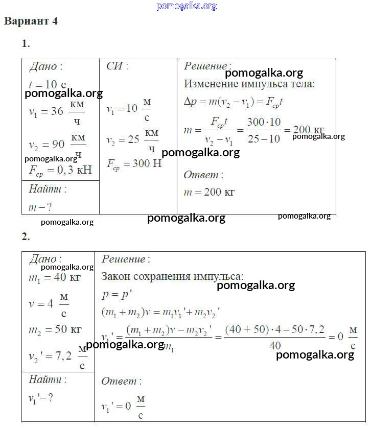 Готовые ответы - Физика 10 класс самостоятельные и контрольные работы Ерюткин Е.С. - ср №2 законы сохранения в механике 4