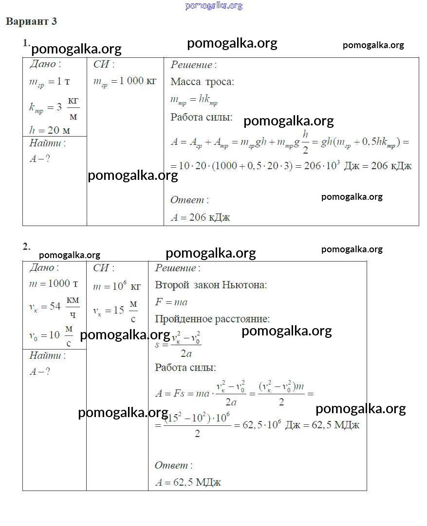Готовые ответы - Физика 10 класс самостоятельные и контрольные работы Ерюткин Е.С. - ср №4 законы сохранения в механике 3